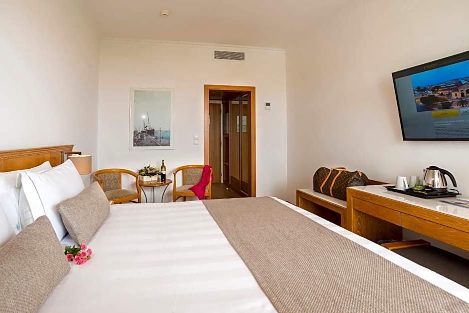 Located on the 4th and 5th floor, this superior room opens to a private balcony with panoramic views over Chania Old Town. It is fitted with a king-size bed with orthopedic mattress and a pillow menu, and also includes: - 49'' Smart TV and Apple TV - a private bathroom with signature toiletries, slippers and bathrobes - free beach towels - wooden floor - mini fridge and a kettle with complimentary teabags and coffee - laptop safe - free WiFi Fiber - steam iron and ironing board.